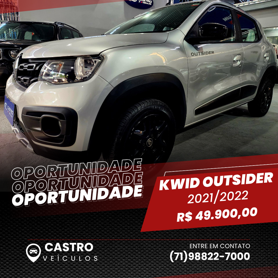 Kwid 1.0 Outsider 2021/2022 Novíssimo CASTRO VEÍCULOS. VENDAS: Ian: (71) 99131-4999 Marcelo: (71) 98363-4557 Kwid 1.0 Outsider 2021/2022 Novíssimo Preço: R$ 49.900,00 Combustível: Gasolina e álcool Câmbio: Manual Cor: Prata KM: 60.000 OPCIONAIS: Direção hidráulica Desembaçador traseiro Computador de bordo Banco do motorista com ajuste de altura Ar-condicionado Air Bag Encosto de cabeça traseiro Freio ABS Sensor de estacionamento Travas elétricas Vidros elétricos Volante com regulagem de altura Tel. (71) 98822-7000 (WhatsApp) Av. Mário Leal Ferreira, 07 Bonocô CEP 40.285-600 - Salvador – BA.