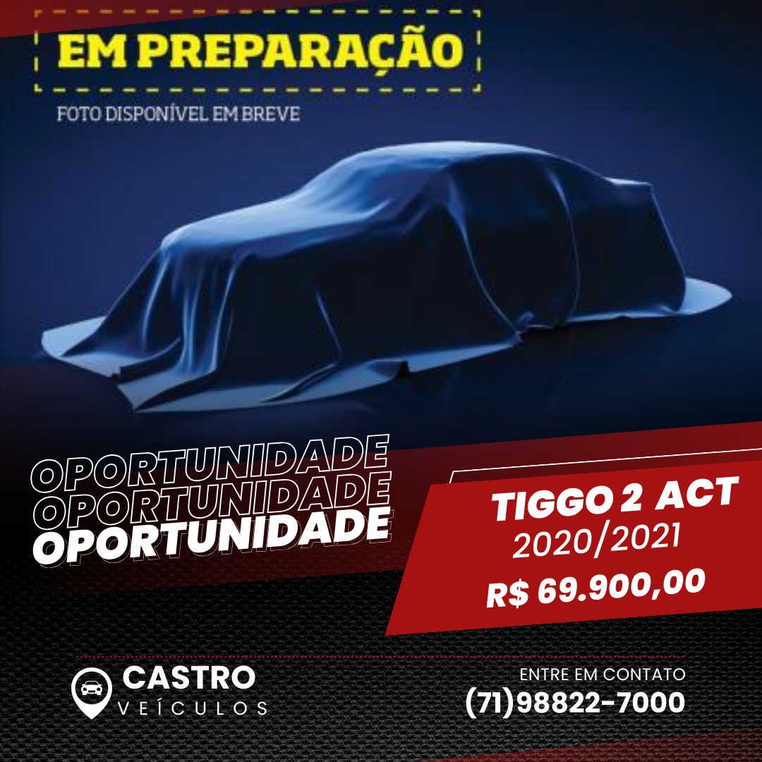 Tiggo 2 1.5 ACT Automático 2020/2021 Novíssimo CASTRO VEÍCULOS. VENDAS: Ian: (71) 99131-4999 Marcelo: (71) 98363-4557 Tiggo 2 1.5 ACT Automático 2020/2021 Novíssimo Preço: R$ 69.900,00 Combustível: Gasolina e álcool Câmbio: Automático Cor: Cinza KM: 42.000 OPCIONAIS: Direção hidráulica Desembaçador traseiro Computador de bordo Banco do motorista com ajuste de altura Ar-condicionado Air Bag Encosto de cabeça traseiro Freio ABS Rodas de liga leve Sensor de estacionamento Travas elétricas Vidros elétricos Volante com regulagem de altura Tel. (71) 98822-7000 (WhatsApp) Av. Mário Leal Ferreira, 07 Bonocô CEP 40.285-600 - Salvador – BA.
